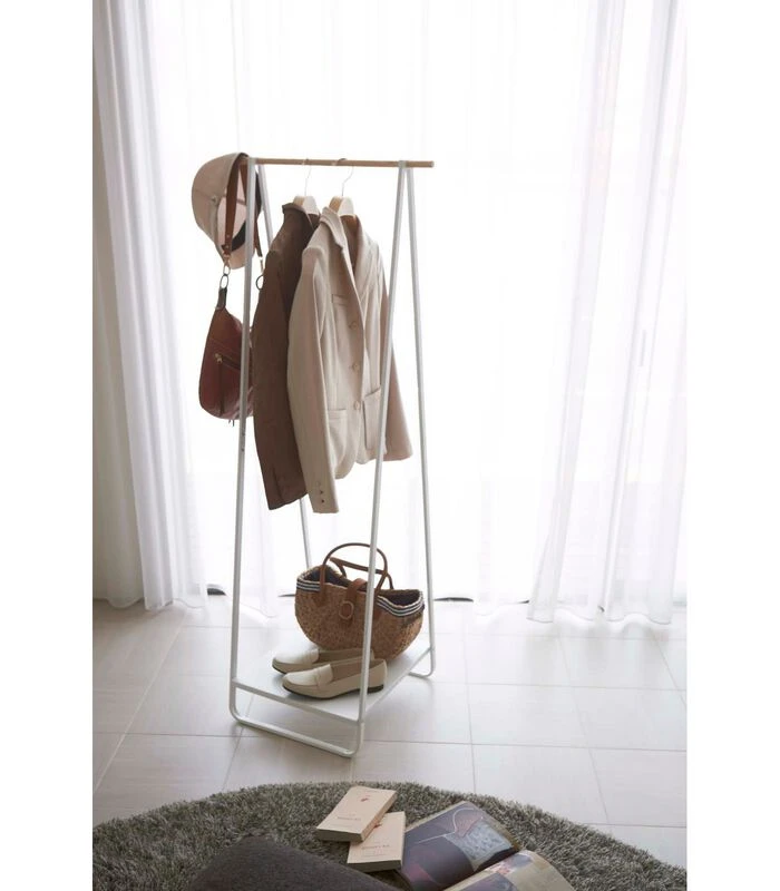 Een stijlvol rek om uw favoriete kleding aan op te hangen. Op de bodem zit een practische plank voor uw schoenen, tassen of andere accessoires.